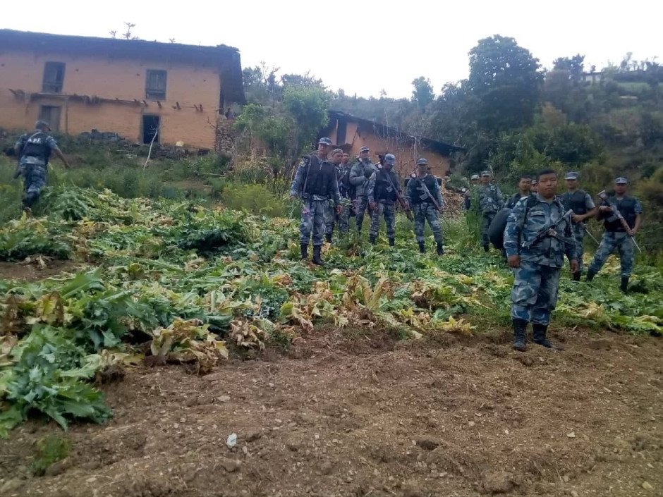 सशस्त्र प्रहरी बलबाट आठविसकाेट न पा मा अफिम खेती नष्ट गर्दै