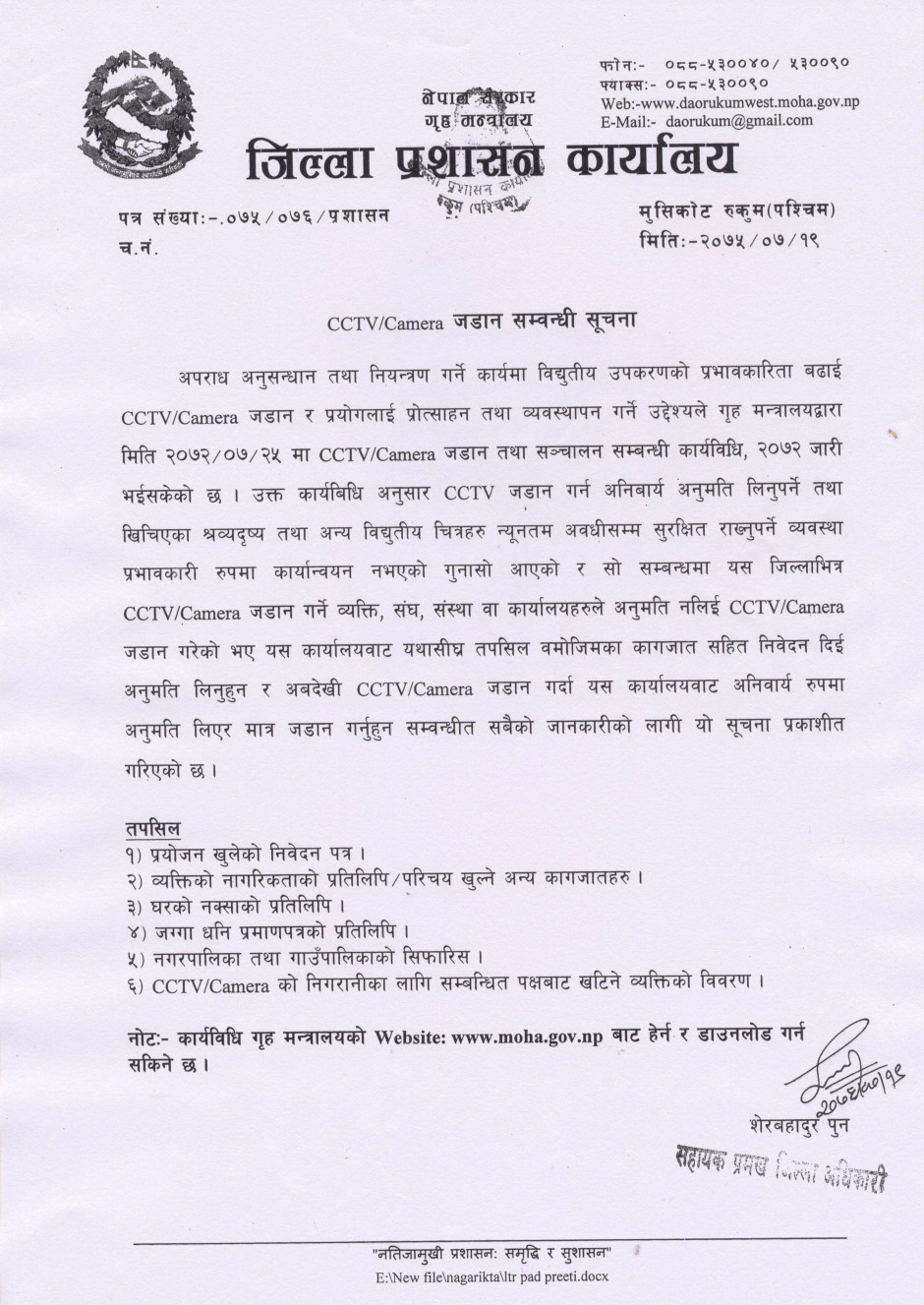 © सर्वाधिकार सुरक्षित जिल्ला प्रशासन कार्यालय, रुकुम (पश्चिम भाग)