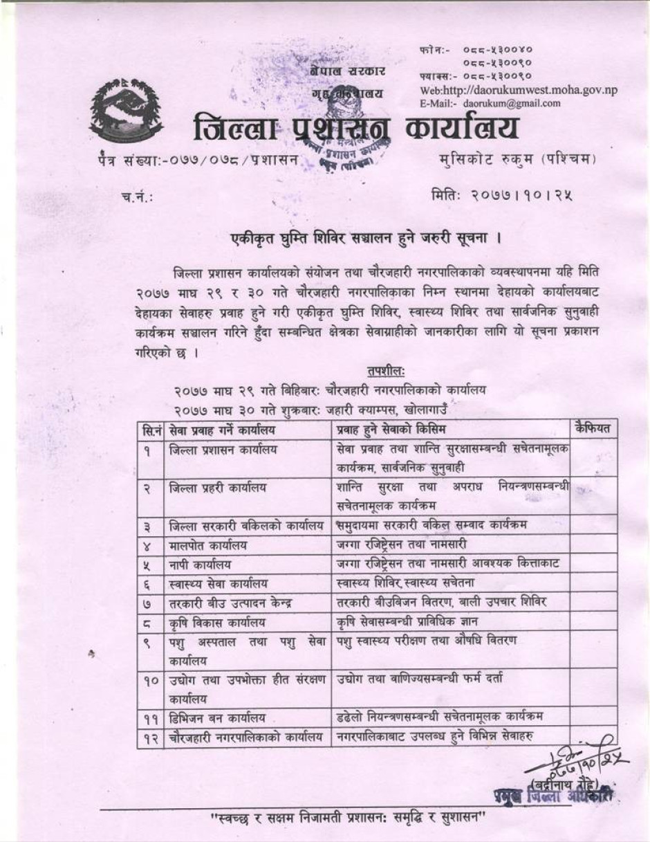 © सर्वाधिकार सुरक्षित जिल्ला प्रशासन कार्यालय, रुकुम (पश्चिम भाग)