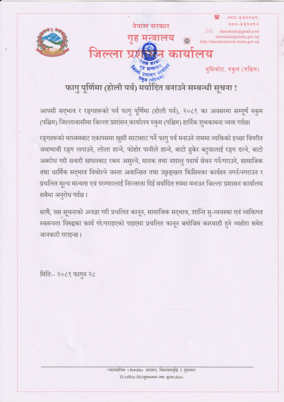 तस्बिर : फागु पूर्णिमा(होली पर्व) मर्यादित बनाउने सम्बन्धी सूचना !