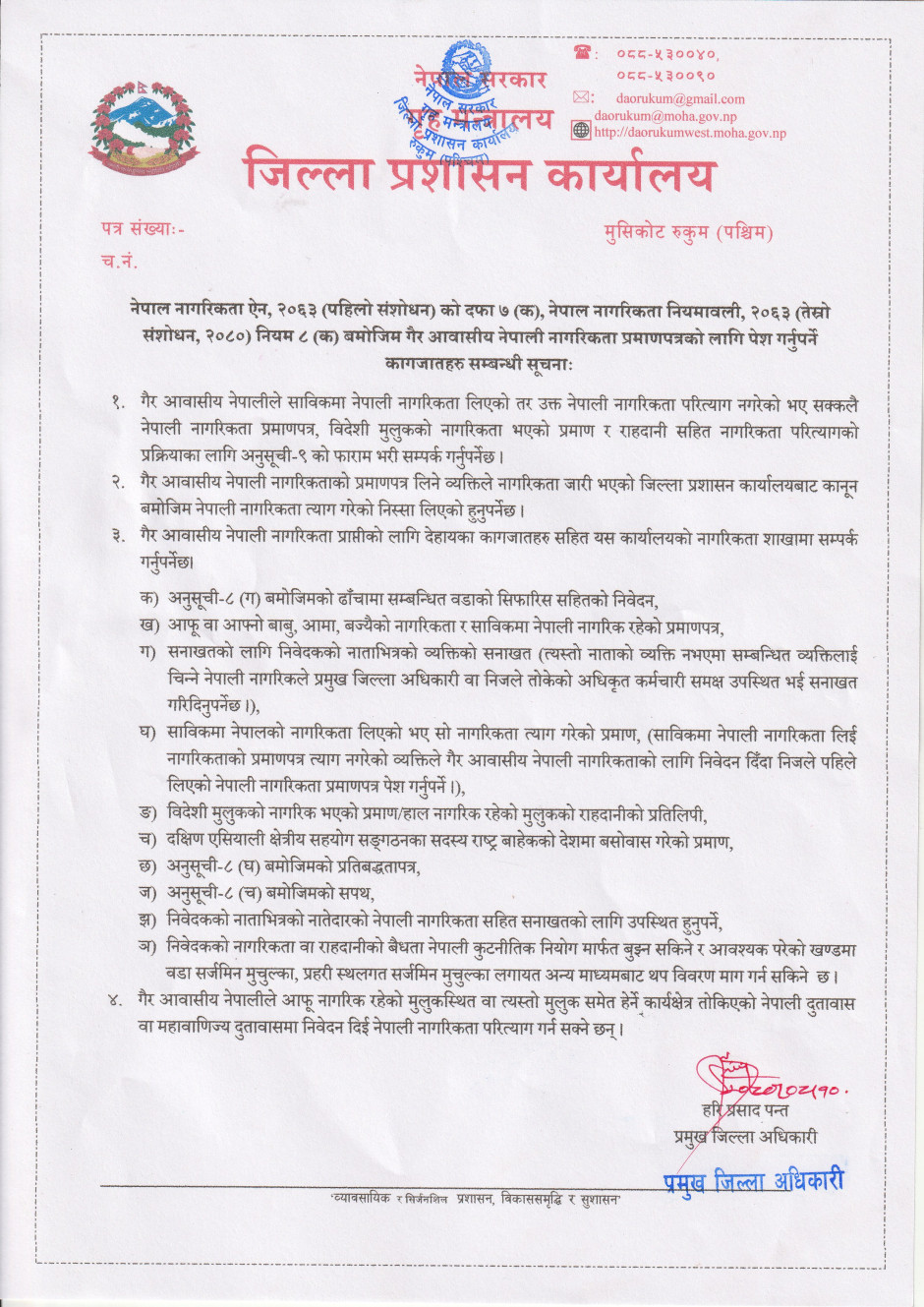 © सर्वाधिकार सुरक्षित जिल्ला प्रशासन कार्यालय, रुकुम (पश्चिम भाग) .