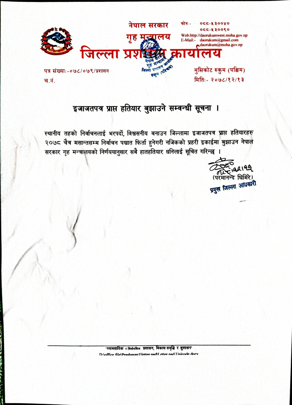 © सर्वाधिकार सुरक्षित जिल्ला प्रशासन कार्यालय, रुकुम (पश्चिम भाग)