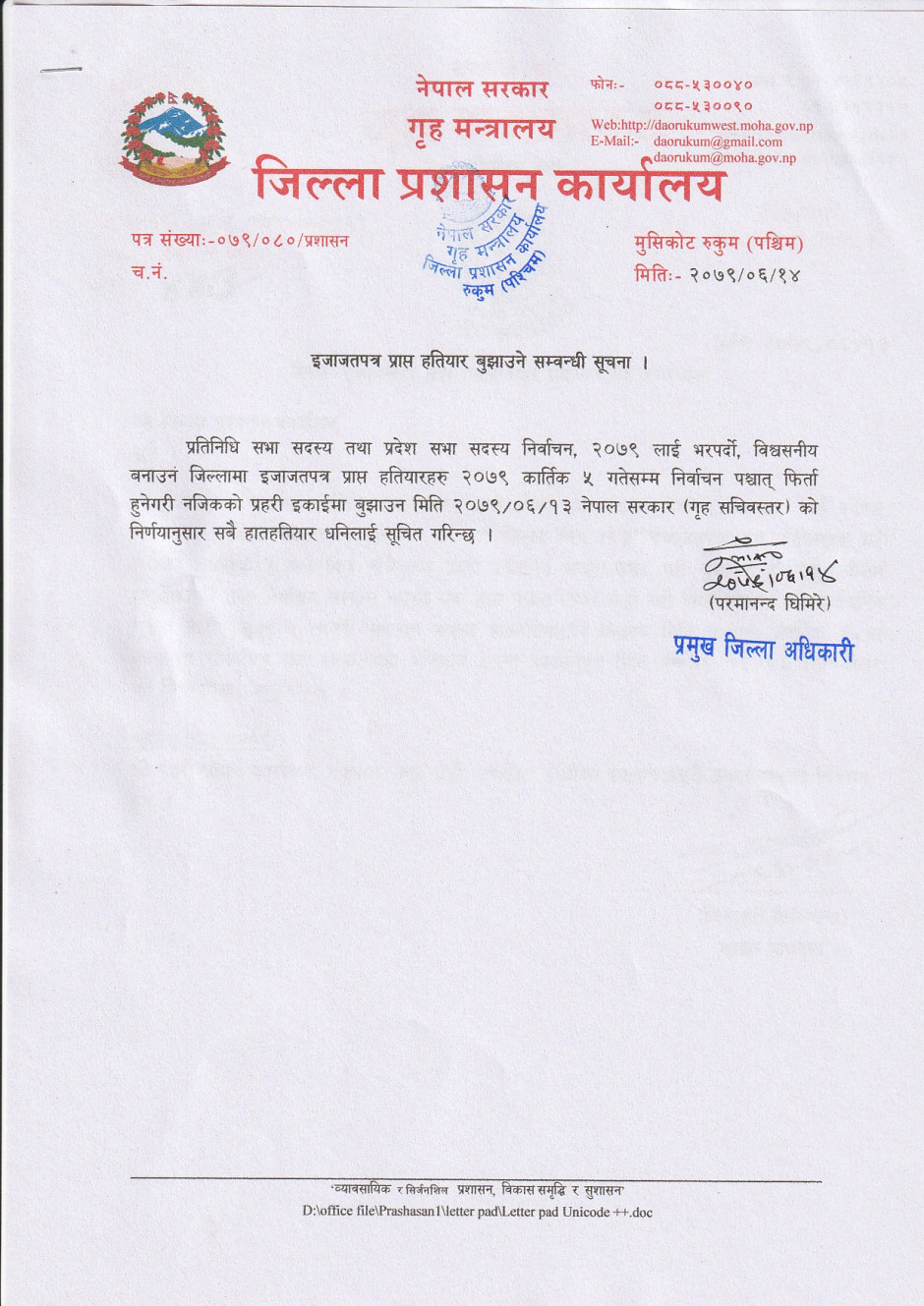 © सर्वाधिकार सुरक्षित जिल्ला प्रशासन कार्यालय, रुकुम (पश्चिम भाग)