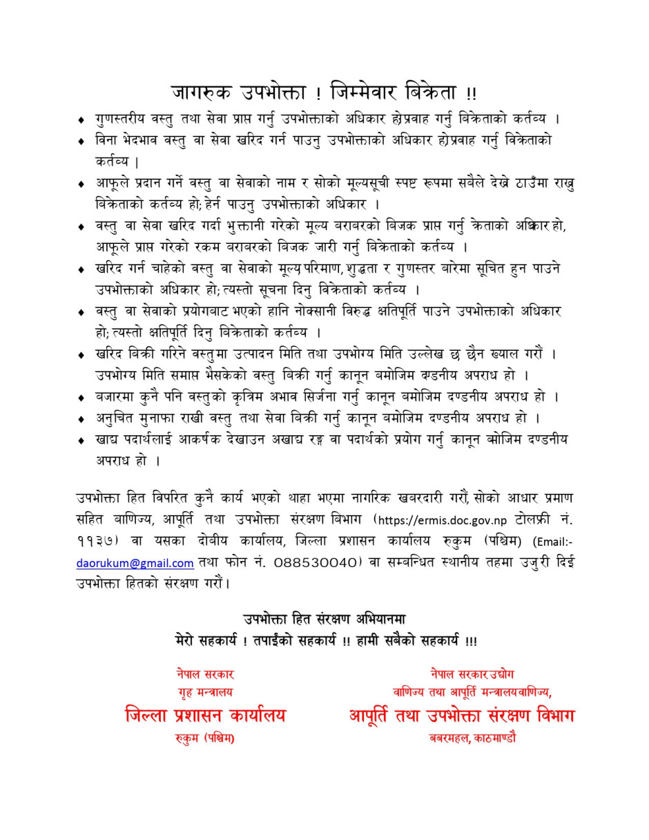 © सर्वाधिकार सुरक्षित जिल्ला प्रशासन कार्यालय, रुकुम (पश्चिम भाग)