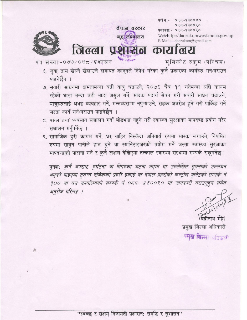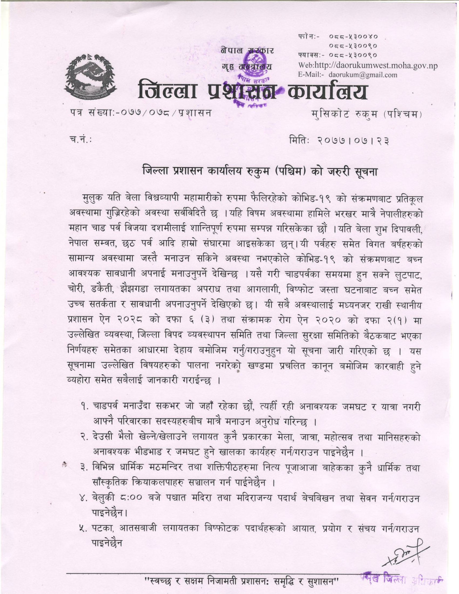 जिल्ला प्रशासन कार्यालय रुकुम (पश्चिम) को जरुरी सूचना