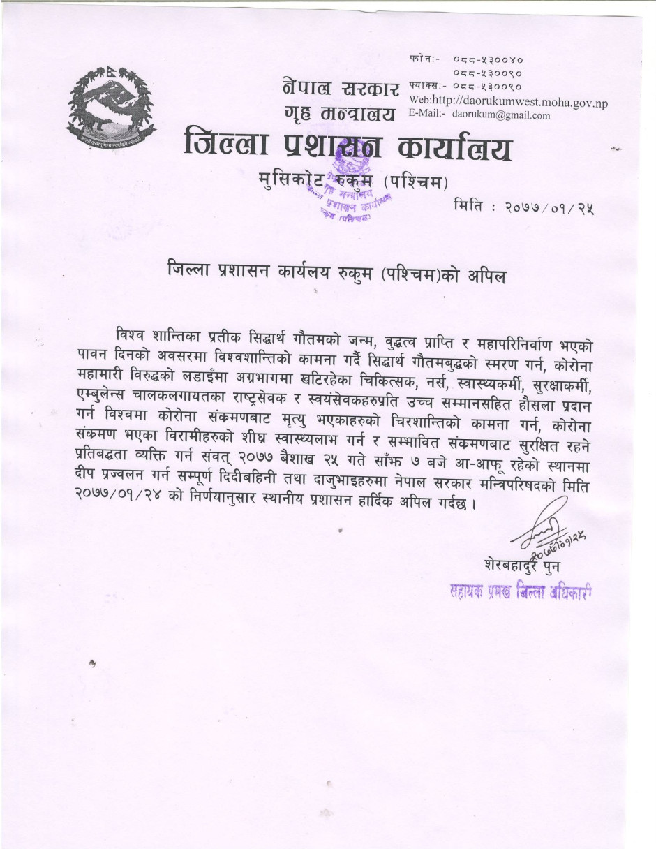© सर्वाधिकार सुरक्षित जिल्ला प्रशासन कार्यालय, रुकुम (पश्चिम भाग)