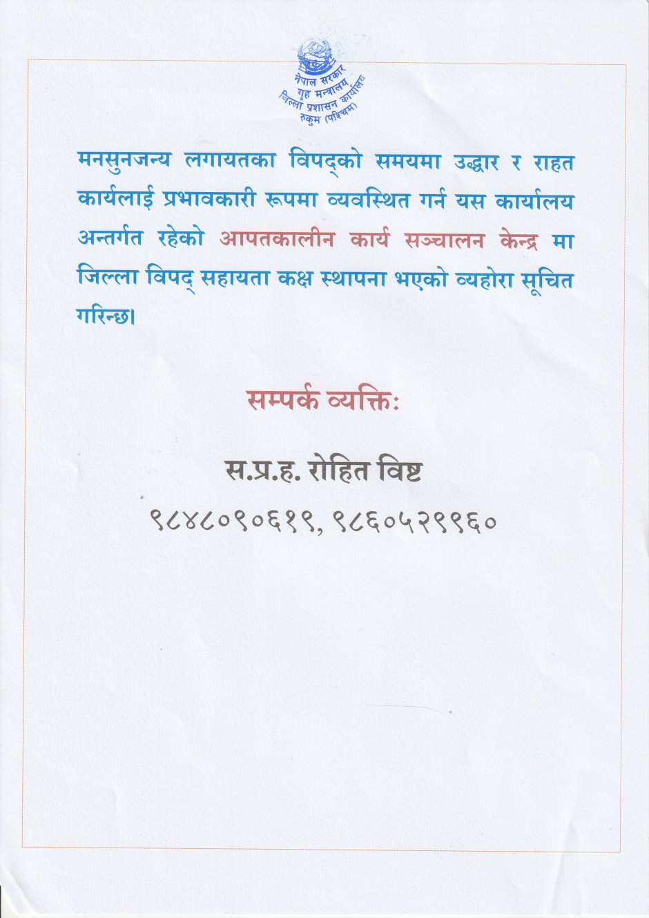 जिल्ला विपद् सहायता कक्ष स्थापना भएको सूचना!