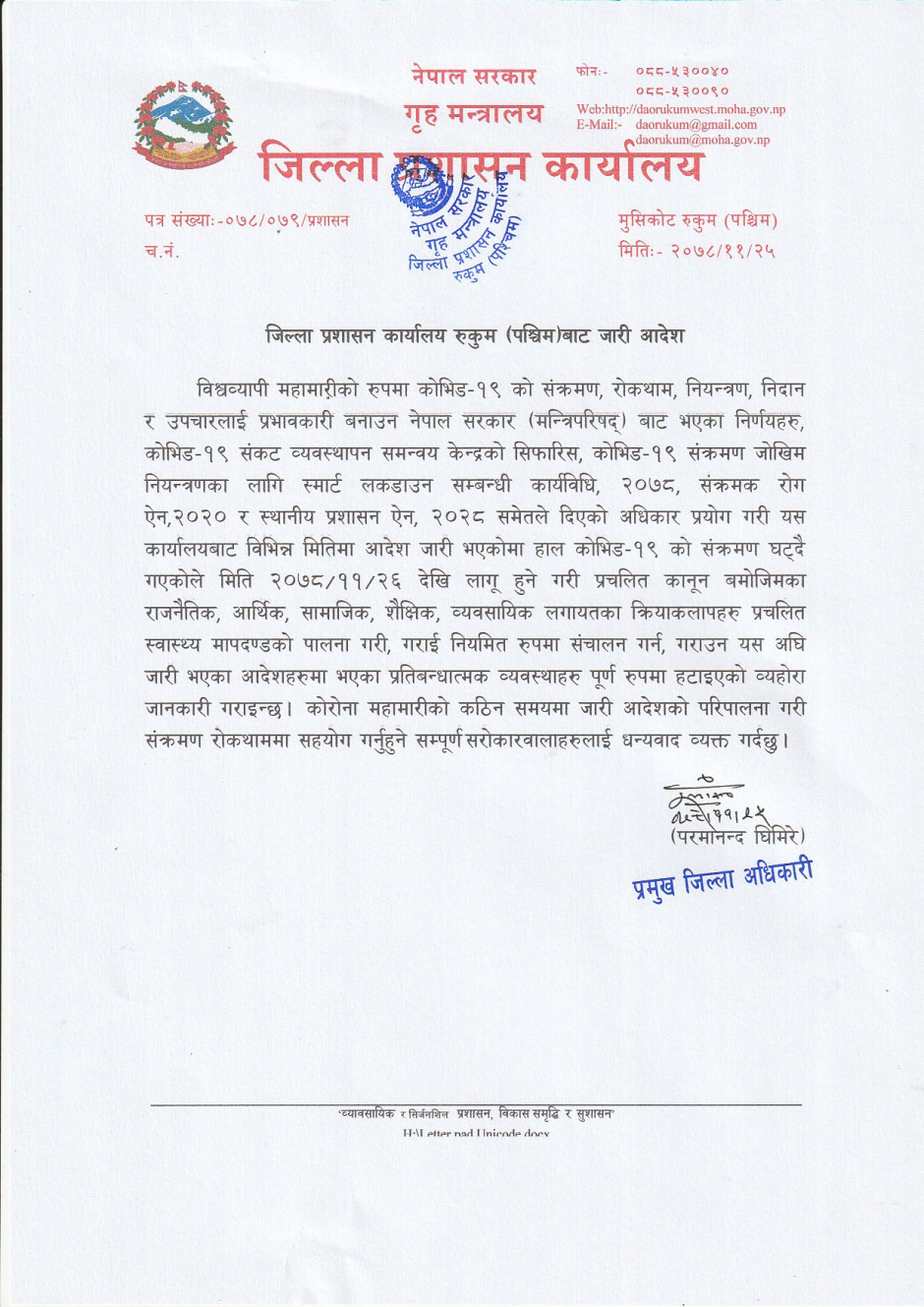 © सर्वाधिकार सुरक्षित जिल्ला प्रशासन कार्यालय, रुकुम (पश्चिम भाग)