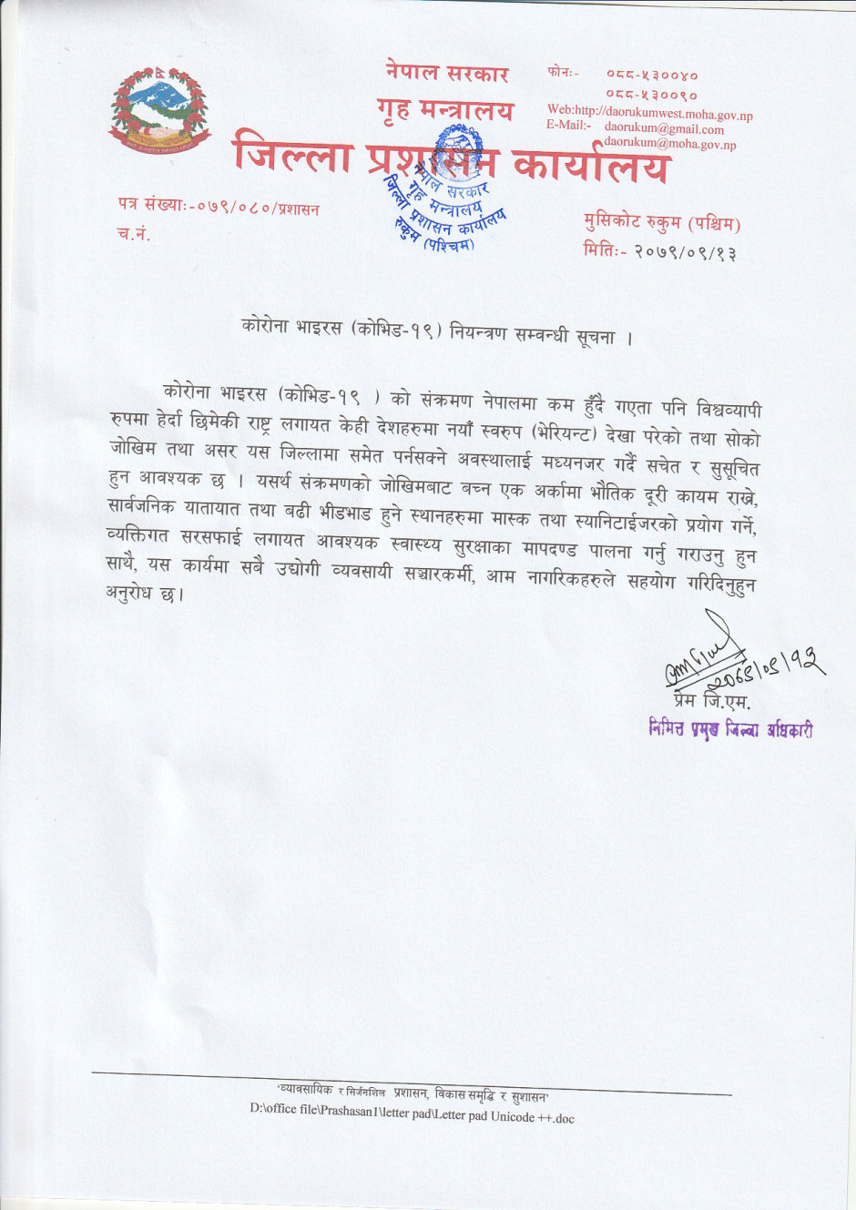 कोरोना भाइरस (कोभिड - १९ ) नियन्त्रण सम्वन्धी सूचना