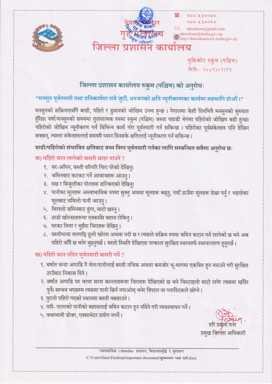 © सर्वाधिकार सुरक्षित जिल्ला प्रशासन कार्यालय, रुकुम (पश्चिम भाग) .
