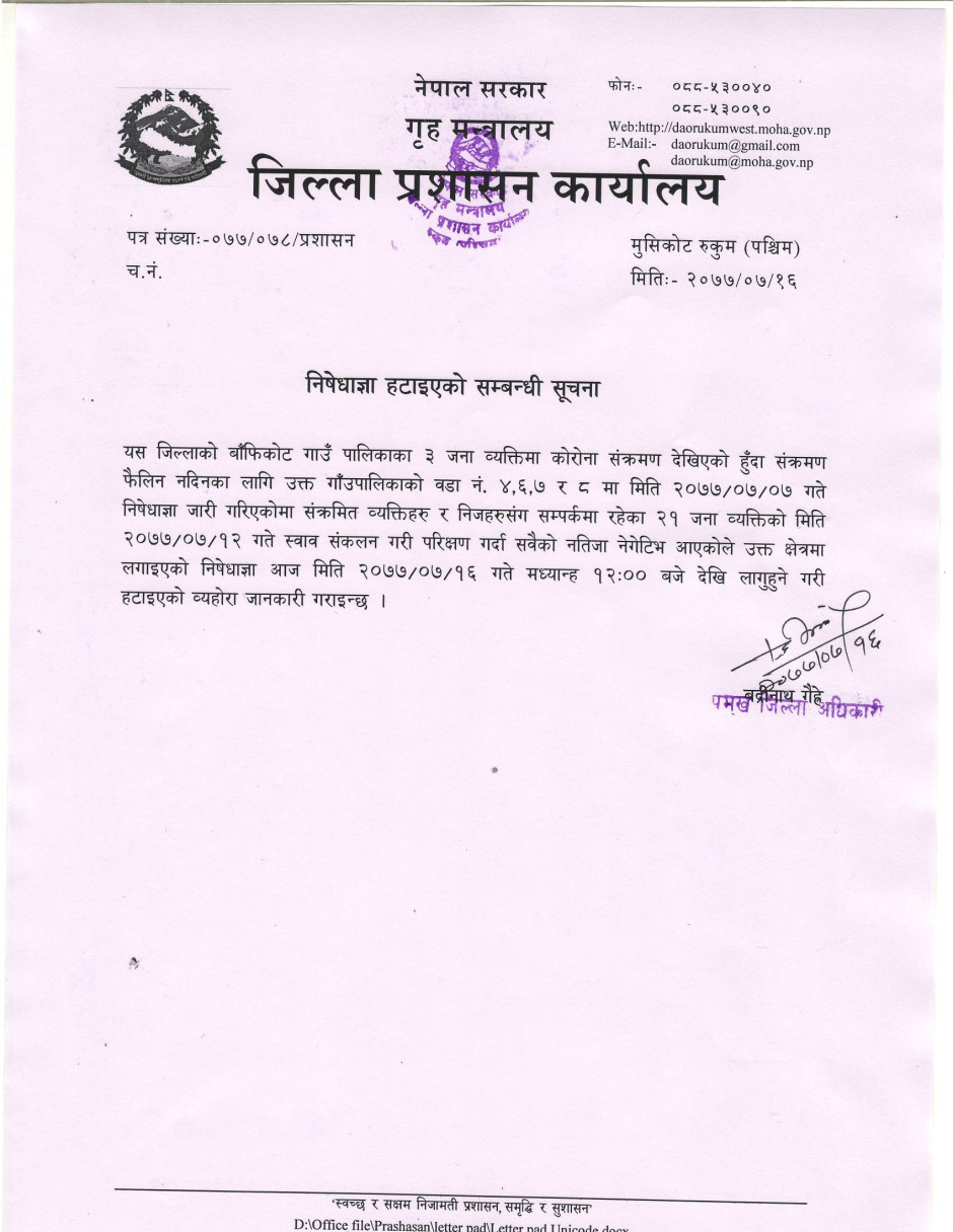 © सर्वाधिकार सुरक्षित जिल्ला प्रशासन कार्यालय, रुकुम (पश्चिम भाग)