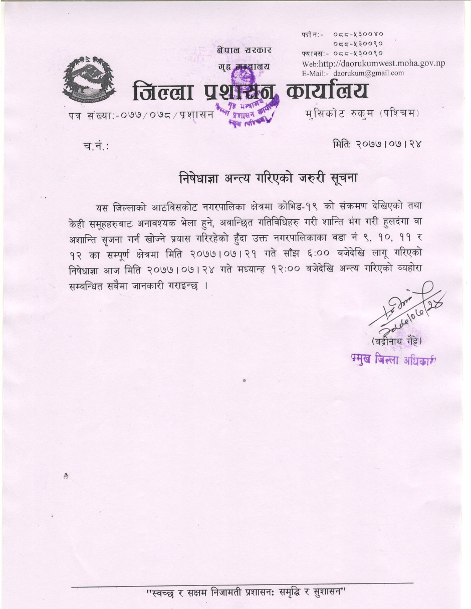 © सर्वाधिकार सुरक्षित जिल्ला प्रशासन कार्यालय, रुकुम (पश्चिम भाग)