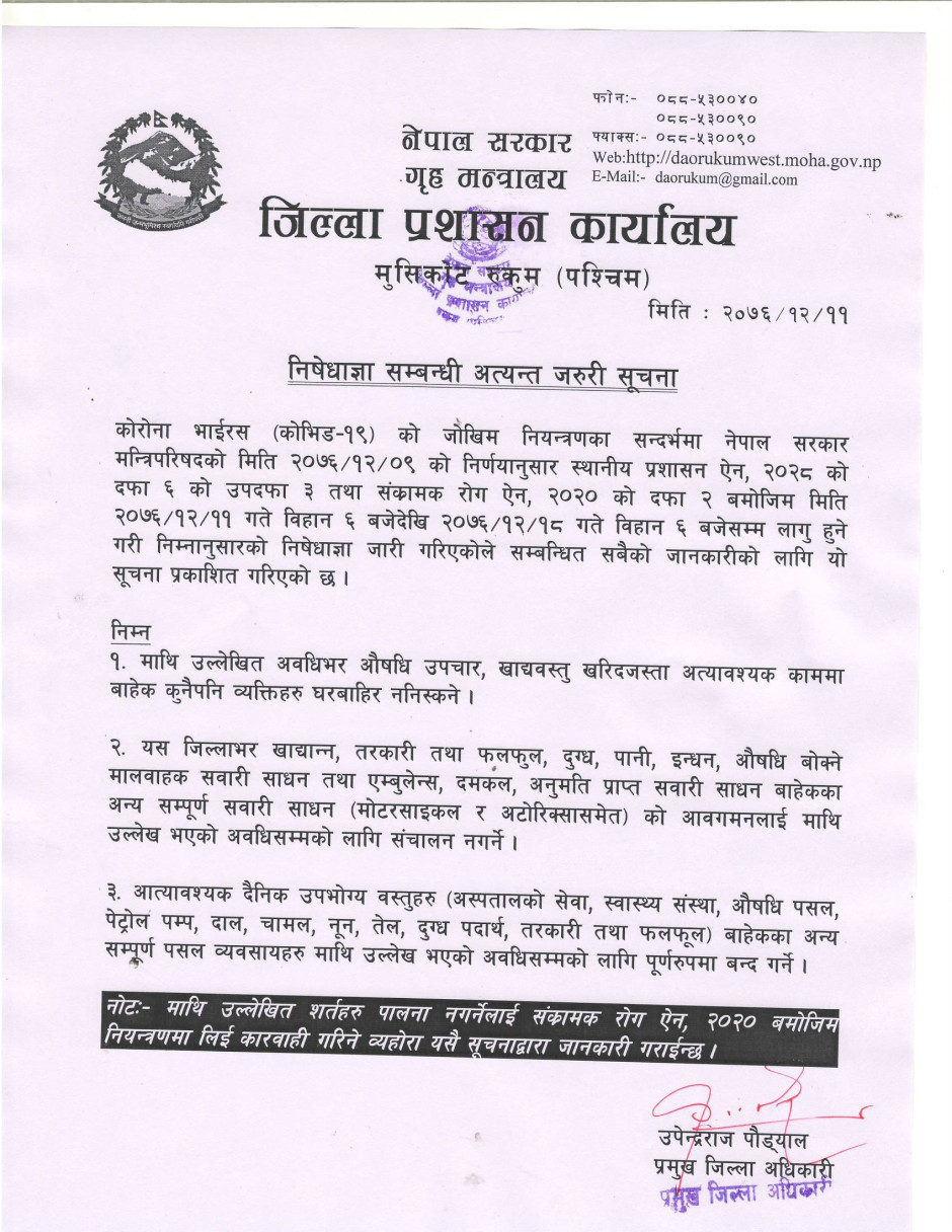 © सर्वाधिकार सुरक्षित जिल्ला प्रशासन कार्यालय, रुकुम (पश्चिम भाग)