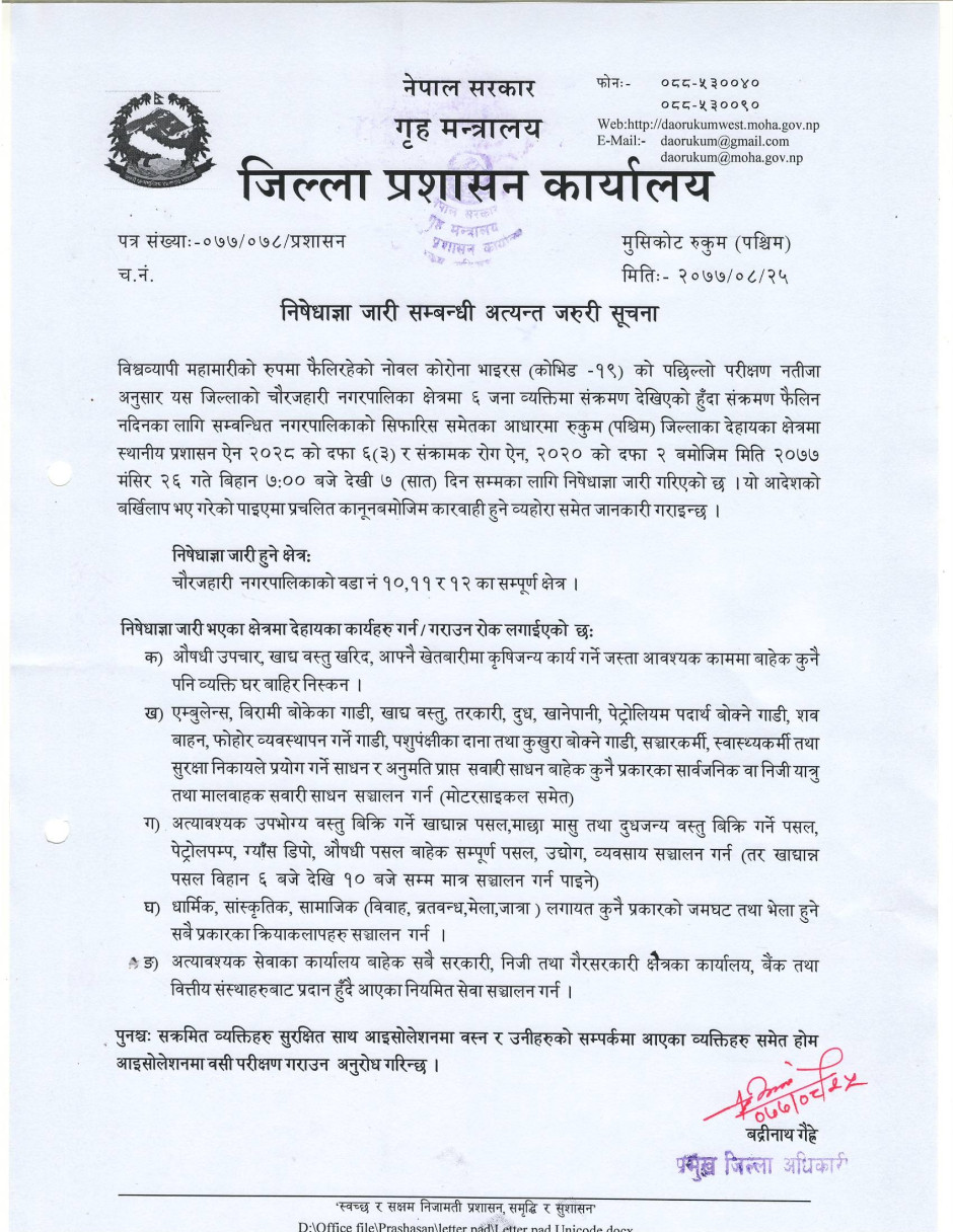 © सर्वाधिकार सुरक्षित जिल्ला प्रशासन कार्यालय, रुकुम (पश्चिम भाग)