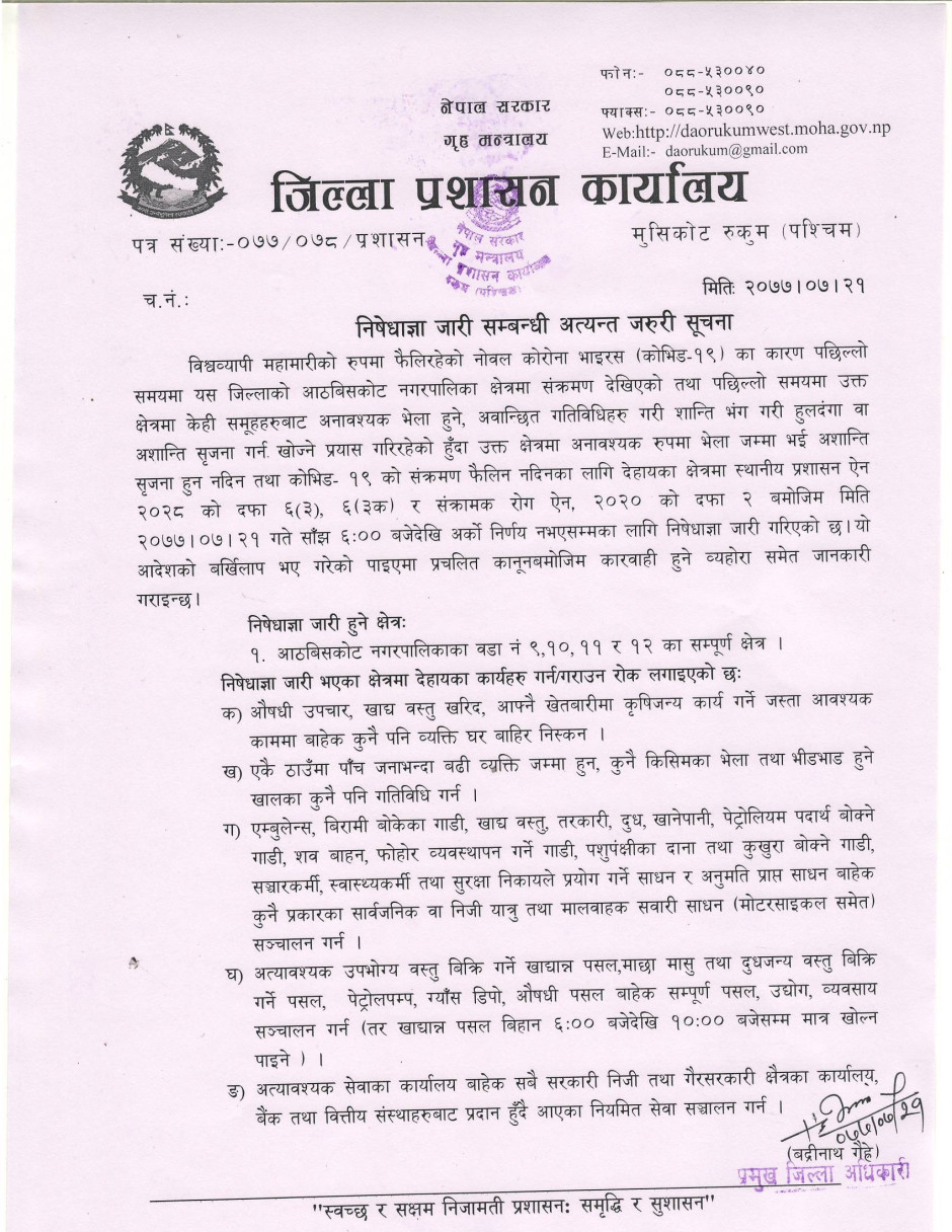 © सर्वाधिकार सुरक्षित जिल्ला प्रशासन कार्यालय, रुकुम (पश्चिम भाग)