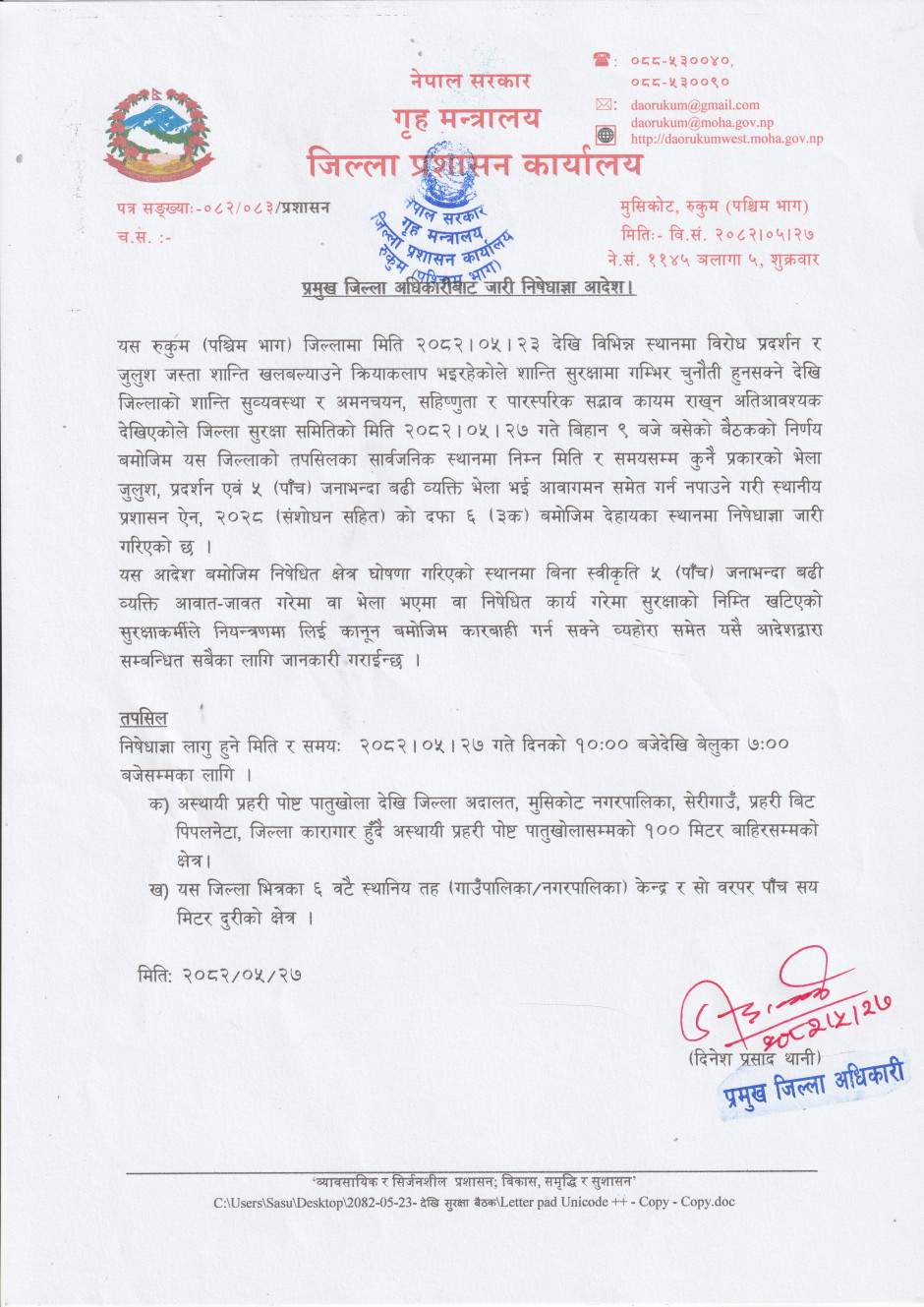 IMG_20250912_0002.jpg तस्बिर : प्रमुख जिल्ला अधिकारीबाट जारी निषेधाज्ञा आदेश ।
