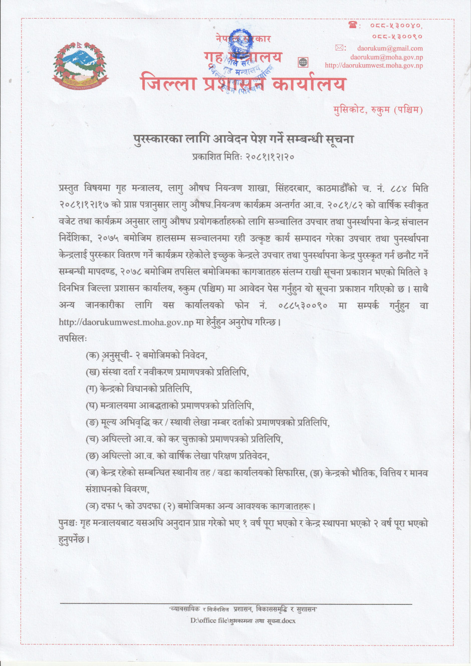 © सर्वाधिकार सुरक्षित जिल्ला प्रशासन कार्यालय, रुकुम (पश्चिम भाग) .