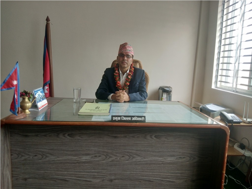 रुकुम (पश्चिम) जिल्लाका प्रमुख जिल्ला अधिकारी उपेन्द्र राज पौड्याल मिति २०७६/०२/२७ मा पदभार ग्रहन गर्दै
