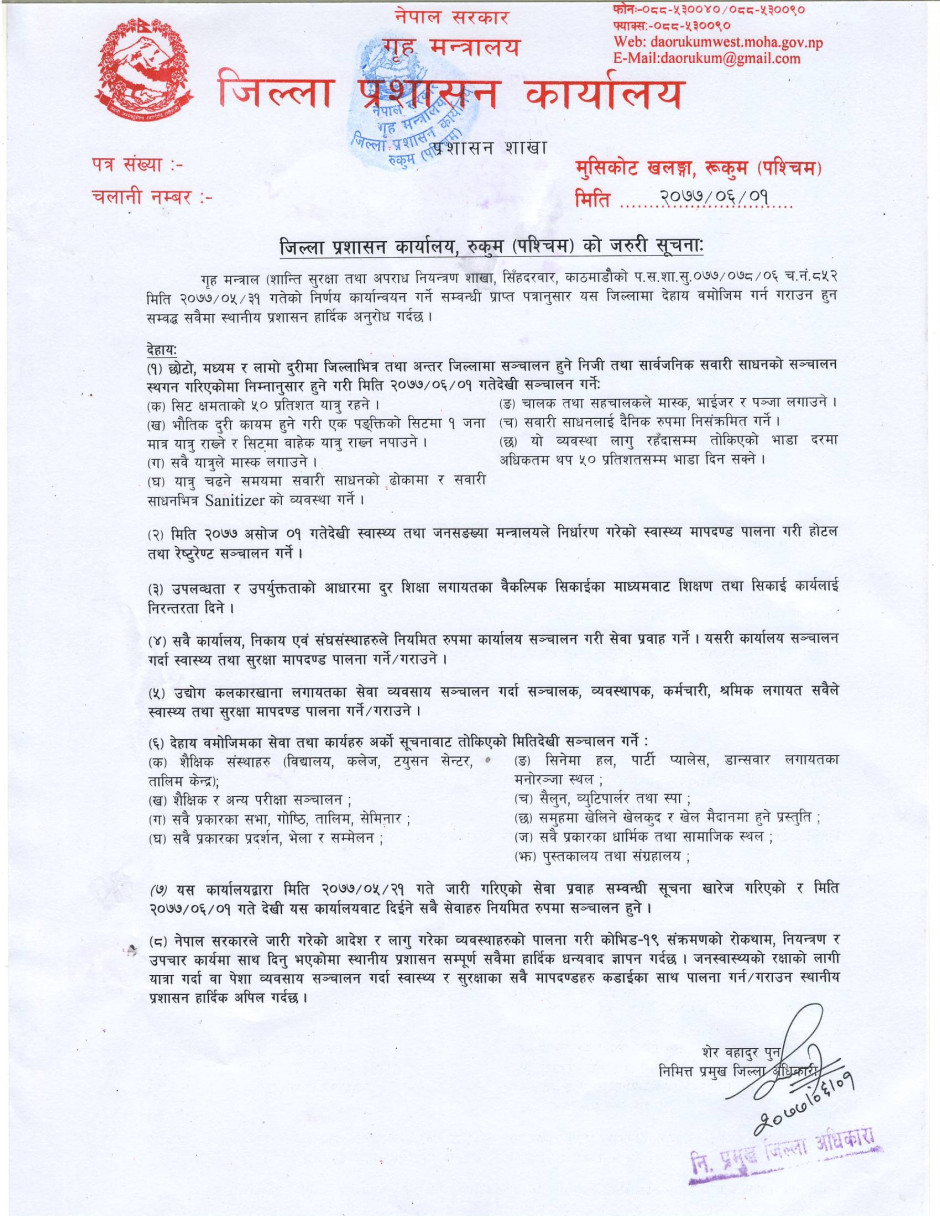 © सर्वाधिकार सुरक्षित जिल्ला प्रशासन कार्यालय, रुकुम (पश्चिम भाग)