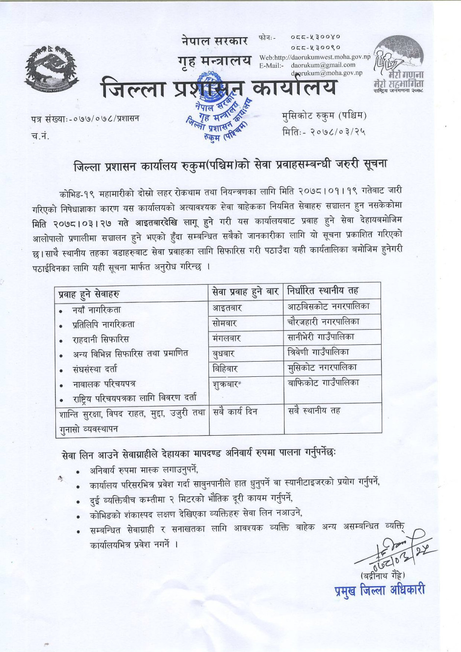 © सर्वाधिकार सुरक्षित जिल्ला प्रशासन कार्यालय, रुकुम (पश्चिम भाग)