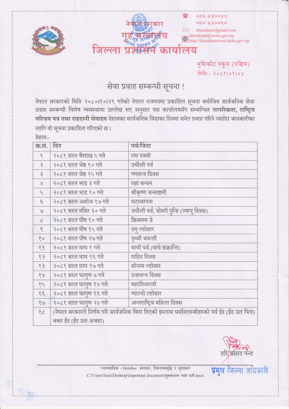 तस्बिर : सेवा प्रवाह सम्बन्धी सूचना !