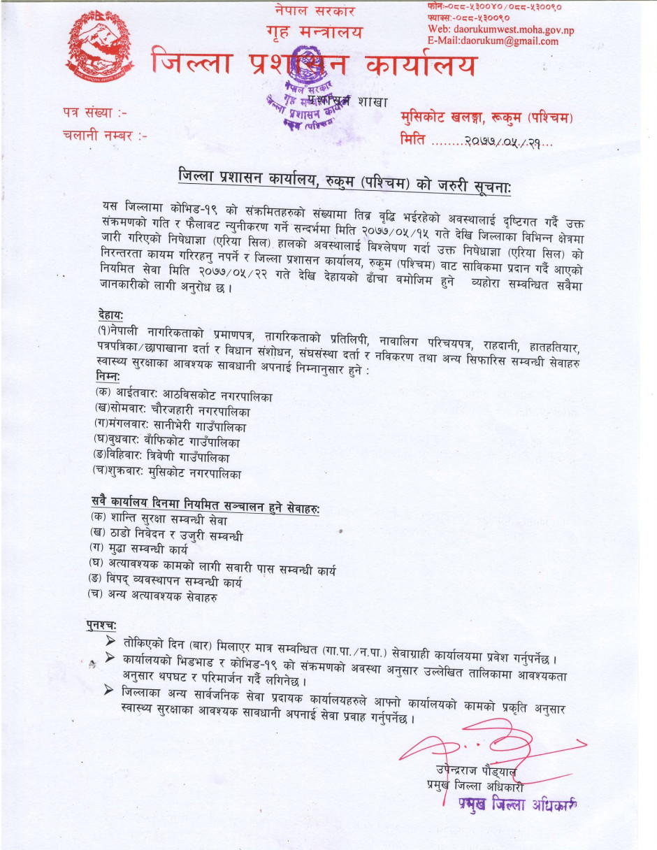 © सर्वाधिकार सुरक्षित जिल्ला प्रशासन कार्यालय, रुकुम (पश्चिम भाग)