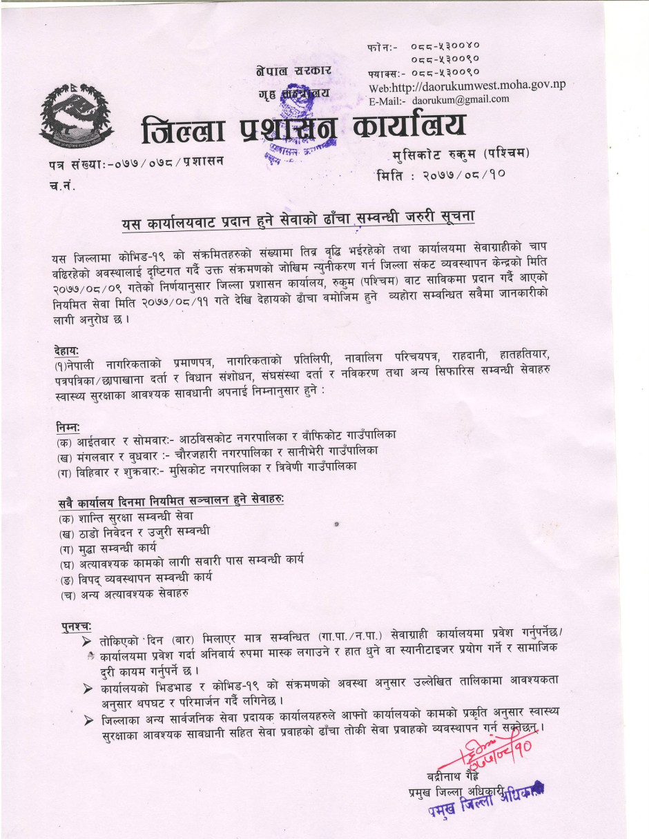 © सर्वाधिकार सुरक्षित जिल्ला प्रशासन कार्यालय, रुकुम (पश्चिम भाग)