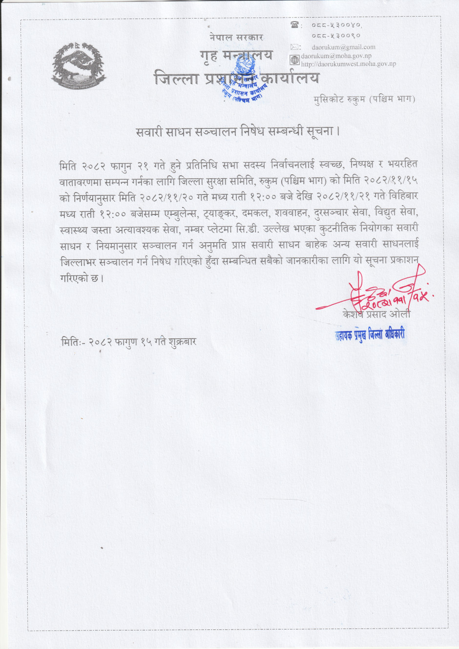 © सर्वाधिकार सुरक्षित जिल्ला प्रशासन कार्यालय, रुकुम (पश्चिम भाग) .