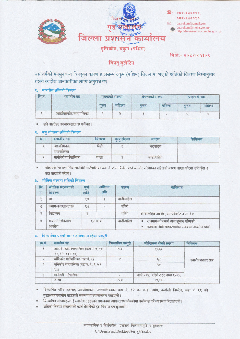 © सर्वाधिकार सुरक्षित जिल्ला प्रशासन कार्यालय, रुकुम (पश्चिम भाग)