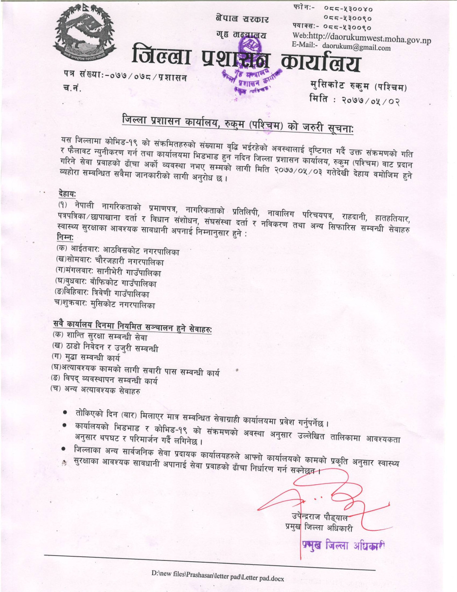 © सर्वाधिकार सुरक्षित जिल्ला प्रशासन कार्यालय, रुकुम (पश्चिम भाग)